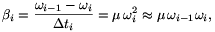 ti intervallumokra (ezek legyenek olyan rövidek, hogy alattuk a fékezést egyenletesnek tekinthessük), és jelölje a szögsebesség értékét az i-edik intervallum végén