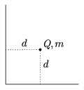 P. 3585. Derékszögben meghajlított, igen nagy kiterjedésű, vékony fémlap mindkét lapjától egyaránt d távolságra elhelyezünk egy m tömegű, Q töltésű kicsiny testet, majd elengedjük.