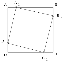 C. 735.Az egységnyi oldalú ABCD négyzet AB, BC, CD, DA oldalán fölvesszük az A1, B1, C1, D1 pontokat úgy, hogy \(\displaystyle AA_1=BB_1=CC_1=DD_1=\frac{1}{5}\). Mekkora az A1B1C1D1 négyszög területe?