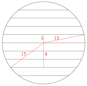 A lécek 3 cm széles körszeletek lesznek. Összhosszuk Pitagorasz tételét használva: