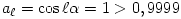 az indukciós feltevés alapján. Azt kell tehát bizonyítani, hogy van olyan n pozitív egész szám, amelyre cos n\(\displaystyle \alpha\)>0,9999. Ha alkalmas k,\(\displaystyle \ell\) pozitív egész számokkal \(\displaystyle \alpha\)=2k\(\displaystyle \pi\)/\(\displaystyle \ell\) alakba írható (megmutatható egyébként, hogy nem ez a helyzet), akkor \(\displaystyle \ell\)