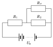 P. 3717. Az ábrán látható kapcsolásban R1=60 \(\displaystyle \Omega\), R2=30 \(\displaystyle \Omega\), az U0 feszültségű akkumulátor-telep belső ellenállása elhanyagolható.