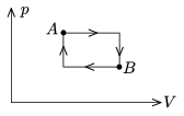 P. 3739. 2 gramm héliumgázzal az ábrán látható körfolyamatot végeztetjük. A körfolyamat közben a gáz legalacsonyabb hőmérséklete 16 oC, a legmagasabb hőmérséklete 88 oC, közben az A és B állapotban a gáz hőmérséklete egyenlő.