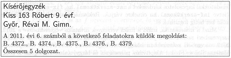 MINTA dolgozat fejlécéhez: Azokat a dolgozatokat, amelyeken nincs feltüntetve osztály és iskola városnévvel együtt, több feladat megoldását tartalmazzák egy lapon, vagy külalakjuk miatt értékelhetetlenek, nem versenyszerűnek tekintjük. A matematika és fizika dolgozatok tartalmáról Maximális pontszám csak teljes megoldásért jár. A puszta eredményközlést nem értékeljük. A kimondott állításokat matematikából bizonyítani kell, fizikából az alaptörvényeket alkalmazva igazolni. A matematika példák megoldásaként csupán számítógépes programot nem fogadunk el! Törekedjünk a megoldások rövid, olvasható leírására. A geometria feladatok megoldásához mellékeljünk ábrát vagy ábrákat. Lapunkban a megoldások többségét közöljük: ajánljuk ezek tanulmányozását. Levezetés és hivatkozás nélkül csak a középiskolai tananyagban szereplő tételeket fogadjuk el. Közismert tételekre (pl. Menelaosz-tétel, Hölder-egyenlőtlenség stb.) elegendő a nevükkel hivatkozni, egyéb esetekben fel kell tüntetni az idézett forrást (cím, oldalszám vagy internet-cím). Tételekre való hivatkozáskor azt is meg kell mutatni, miért teljesülnek a tétel feltételei, és hogyan következik a tétel állításából a bizonyítás gondolatmenetének következő lépése. Többször előfordult már, hogy egy-egy feladat szerepelt valamely példatárban, vagy megtalálták az interneten. Arra is láttunk példát, hogy egy folyóiratcikkben a feladatban kitűzöttel lényegében ekvivalens, vagy annál általánosabb állítás bizonyítása szerepelt. Célunk továbbra is versenyzőink problémamegoldó képességének fejlesztése, nem pedig a keresőprogramok tesztelése, ezért nem adunk teljes pontszámot azokra a dolgozatokra, amelyek csak a megoldás helyét közlik; a végeredményhez vezető megoldást részletesen le kell írni. Kérjük, hogy ha a megoldáshoz könyvekben vagy az interneten talált írásokat használnak fel, és ezekből idéznek, tüntessék fel a felhasznált forrásokat. FONTOS! A versenyek egyéni versenyek; a versenyzőknek önállóan kell elkészíteniük a példák megoldásait. Szigorúan tilos a kitűzött feladatokat a beküldési határidő előtt másokkal megvitatni, vagy másoktól segítséget kérni a feladatok megoldásához. A közösen készített vagy másolt dolgozatokat - beleértve az eredeti szerzőét is - nem versenyszerűnek értékeljük, és a szerzők nevét honlapunkon is közöljük. A csoportosan másolt dolgozatokat visszaküldjük az osztályt tanító tanárnak. Súlyosabb, az egész pontversenyt veszélyeztető esetekben (pl. az feladatok megtárgyalása internetes fórumokon) az érintett versenyzőket kizárjuk a versenyből. Az informatika megoldások tartalmi követelményei Az I-jelű programozási és az S-jelű feladatok megoldását C, C++, Pascal, Python, Java, Visual Basic vagy C# nyelven kell elkészíteni. A fejlesztéshez bármilyen fejlesztőkörnyezet (IDE) használható, azonban az értékelés mindenképpen a következőkkel történik: Beküldés előtt tehát mindenképpen ellenőrizendő, hogy a forráskód a fenti listában szereplő eszközzel is fordítható, illetve helyesen működik-e. Csak olyan programokat értékelünk, amelyek a fent megjelölt fordítók egyikével lefordíthatók, illetve - számításos jellegű feladatoknál - a kiadott mintabemenetek legalább felére hiba nélkül, rövid időn belül lefutnak, és megfelelő formátumú, értelmes, de nem feltétlen helyes kimenetet adnak. Az I-jelű pontversenyben kitűzött alkalmazói feladatok megoldásához a Microsoft Office 2003/2007/2010 vagy a LibreOffice 3.5/3.6 irodai szoftvercsomagok valamelyike használható. A harmadik típusú feladatok jórészt szabadon fölhasználható programok, esetleg kereskedelmi szoftverek időkorlátos próbaváltozatához kapcsolódnak. Az S-jelű feladatokra adott megoldásokhoz dokumentációt kell készíteni és a forráskódot kommentekkel kell ellátni. A különálló dokumentációban a megoldás elvi menetének, algoritmusának ismertetését várjuk, döntően három részre tagolva: rövid áttekintés az algoritmusról; majd az algoritmus részletes menete; végül egy rövid útmutató a kód értelmezéséhez, leírás a megvalósítás sajátosságairól. A forráskód kommentezésének lényege, hogy segítségével - a dokumentáció ismeretében - könnyen megérthető legyen az egyes kódsorok, kódrészletek feladata, szerepe a megoldás menetében. Ennek megfelelően az egyes osztályokat, függvényeket, kisebb-nagyobb összefüggő kódrészleteket, a nehezebben érthető technikai megoldásokat, illetve a fontosabb (globális és lokális) változókat és típusokat kell mindenképp megjegyzéssel ellátni. Az informatika megoldások formai követelményei Az informatika feladatok megoldásait kizárólag a KöMaL honlapján, az elektronikus munkafüzetben lehet beküldeni, illetve feltölteni. Amennyiben a megoldás több fájlból áll, úgy egy, a fájlok mindegyikét és a dokumentációt is tartalmazó, a feladat sorszámával egyező nevű mappát kell ZIP tömörítéssel becsomagolva egyetlen fájlként beküldeni. Ügyeljünk arra, hogy a tömörített állományokba futtatható fájlok (pl. a fejlesztéskor létrejövő .exe állomány) ne kerüljenek. A programozási feladatoknál a forráskód első soraiban megjegyzésként szerepeljen Szöveges dokumentumok (például dokumentáció) esetén az adatok - a matematika és fizika feladatokhoz hasonlóan - a fájl elején, táblázatkezelő feladatoknál pedig külön munkalapon szerepeljenek, amelynek neve ADATOK legyen. Kérjük, hogy a programozási feladatoknál a program be- és kimenete mindig a feladatban megadott módon valósuljon meg. Erre azért van szükség, mert a beküldött programokat sokféle tesztadatra lefuttatjuk, és ezt igyekszünk auto